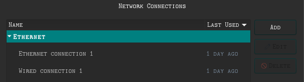 Kesalahan menghapus Wired Connection 1 sehingga Ethernet tidak berfungsi